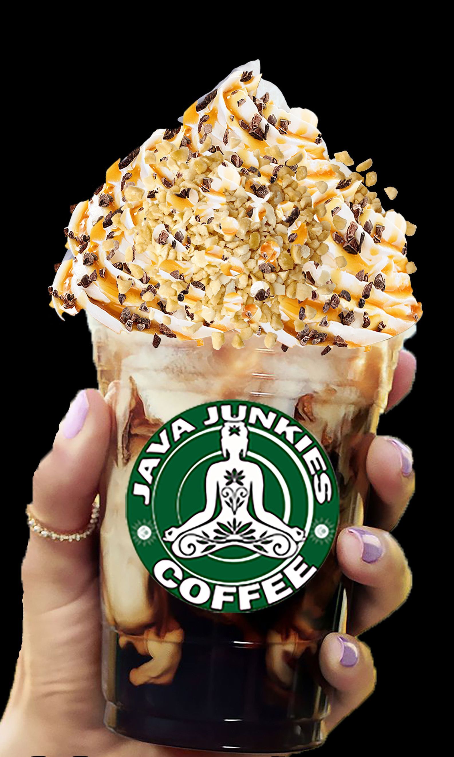 amd topped with whip Cream Carmel and Nuts