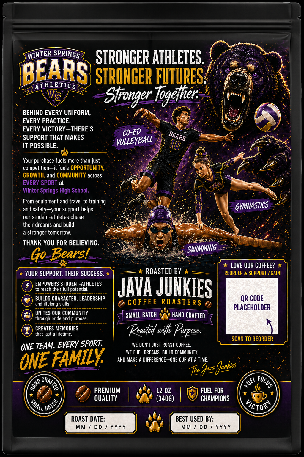 Our premium, locally roasted coffee makes the perfect gift for friends, family, coworkers, and supporters—whether they’re right here in Winter Springs or across the country. With easy shipping available, you can support Winter Springs Athletics from anywhere while sharing something people will actually enjoy every day.